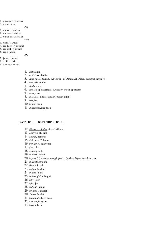 Lihat Daftar Kata Baku Dan Tidak Baku |
